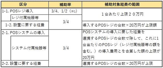 ※1 POS機能を有するソフトウェアを汎用端末にインストール等して利用する場合の汎用端末については補助率は、1/2となります