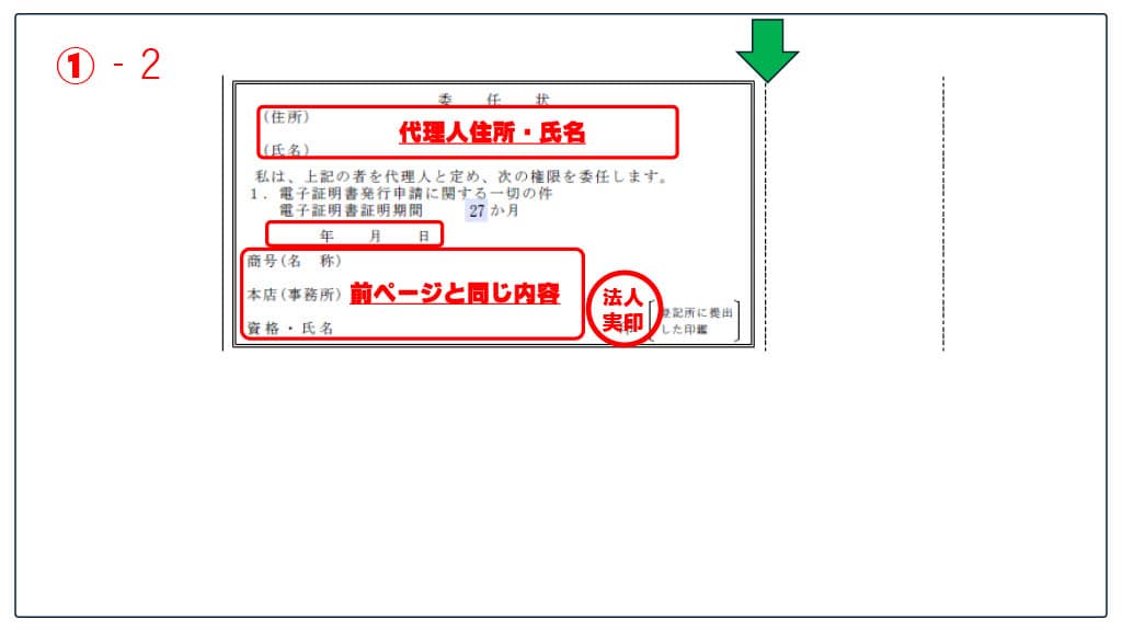 ①『申請書・委任状』は、プリントアウトして記入と法人印の捺印をしていただきます
