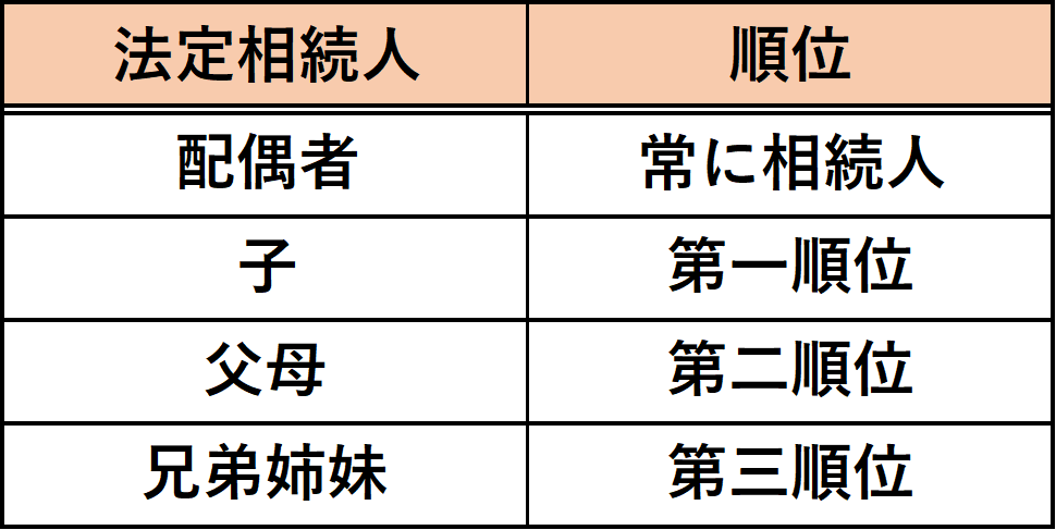 配偶者は常に相続人となり、子・親・兄弟姉妹とそれぞれ相続人になる順位が定められております。