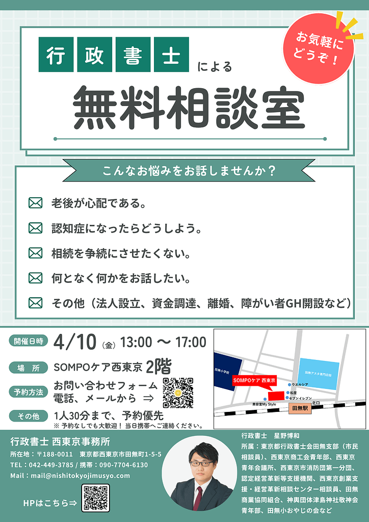 【行政書士による、なんでも無料相談室】を開催いたします。