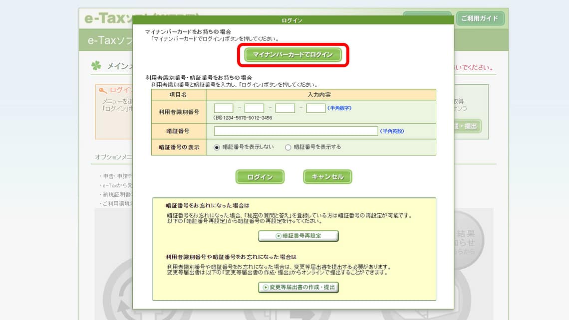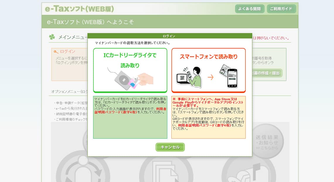 ④カードリーダーライター又はマイナポータルアプリをダウンロードしたスマートフォンのどちらかでログインをします。