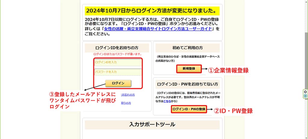 ここから、『女性の活躍推進企業データベース』と『両立支援のひろば』の2か所へ一般事業主行動計画を登録することができます。