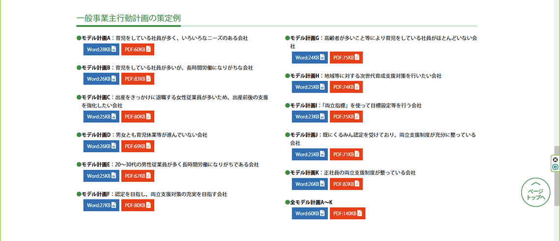 上記モデル計画からも一般事業主行動計画の策定は可能です。