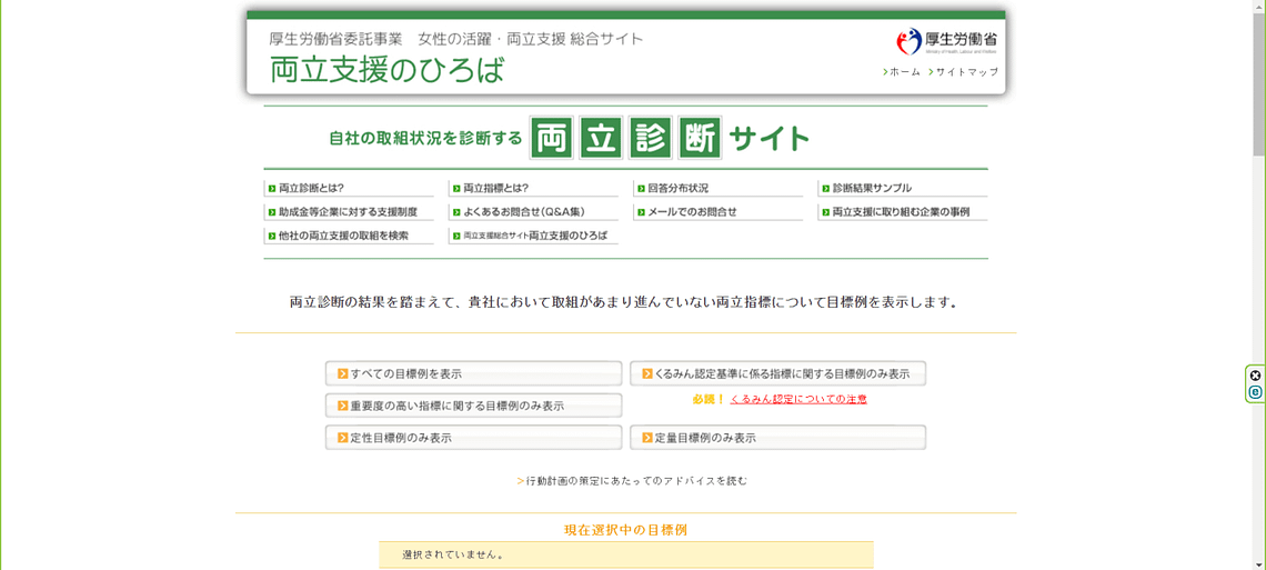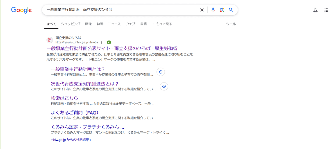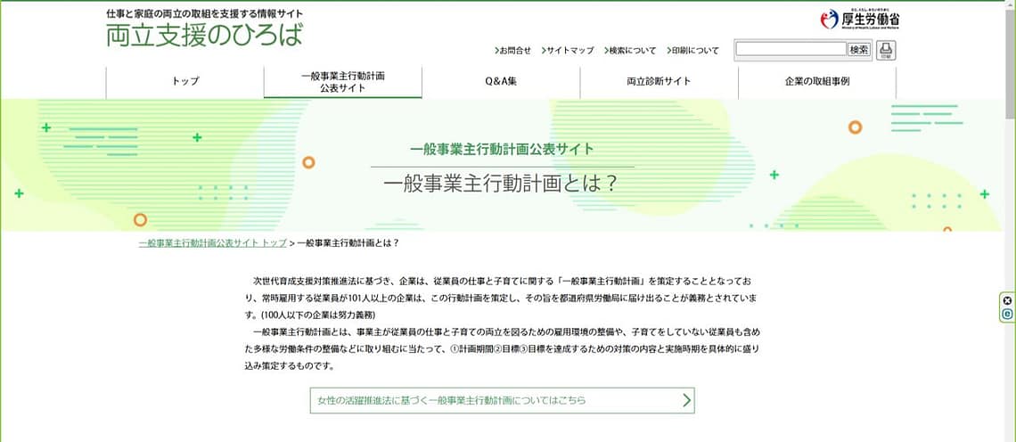 まずは、「一般事業主行動計画 両立支援のひろば」と検索をして、サイトへ入ります。