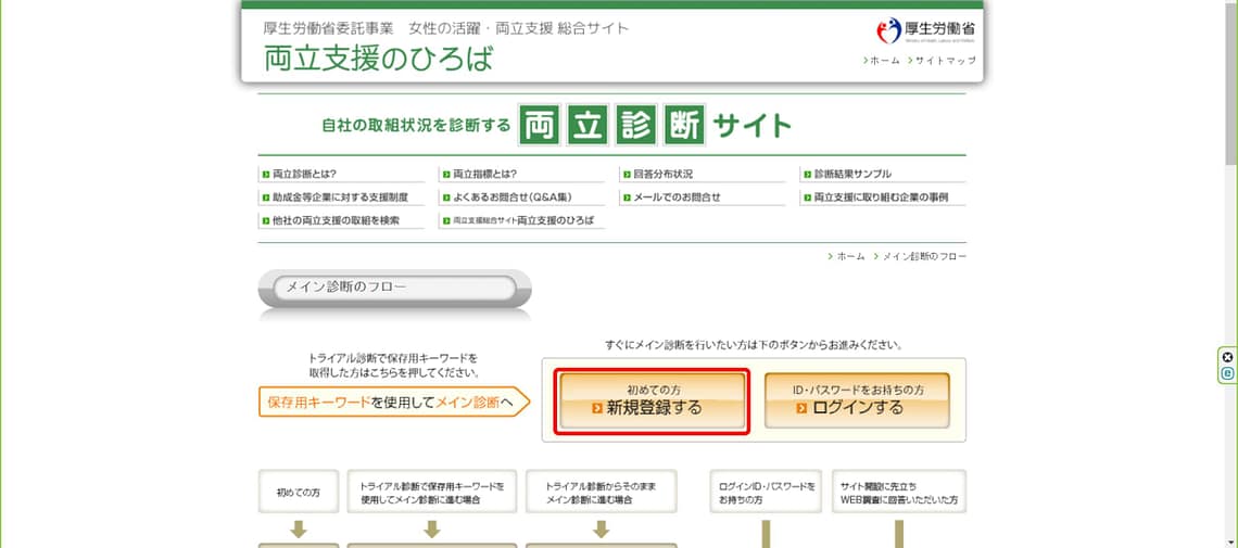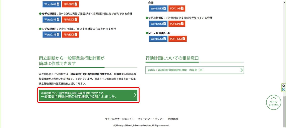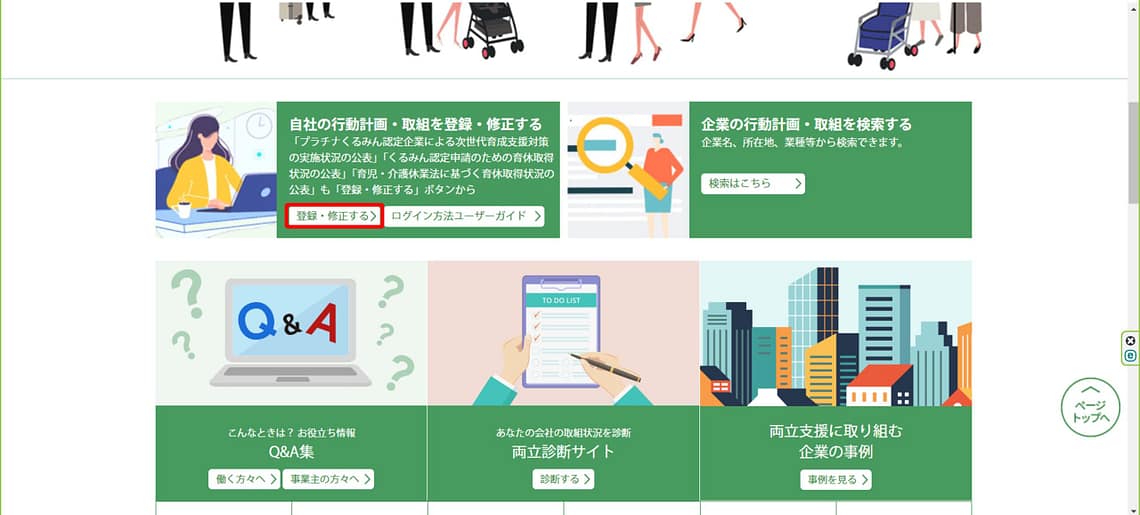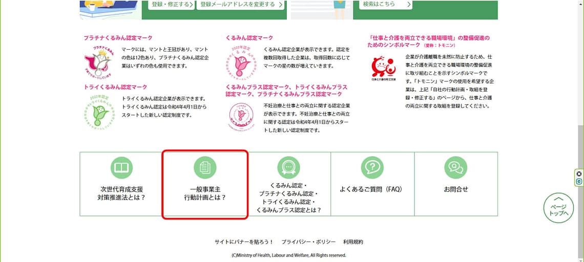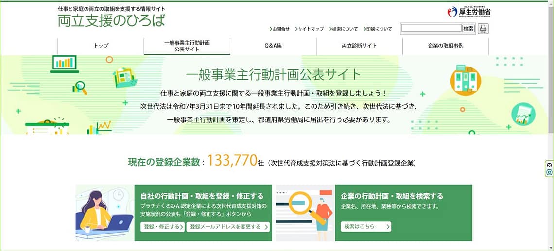 また、作成した一般事業主行動計画は、「両立支援のひろば」のTOPページから登録することができます。