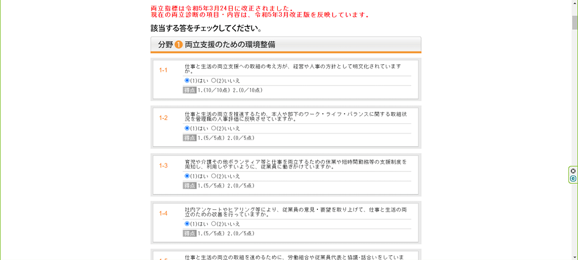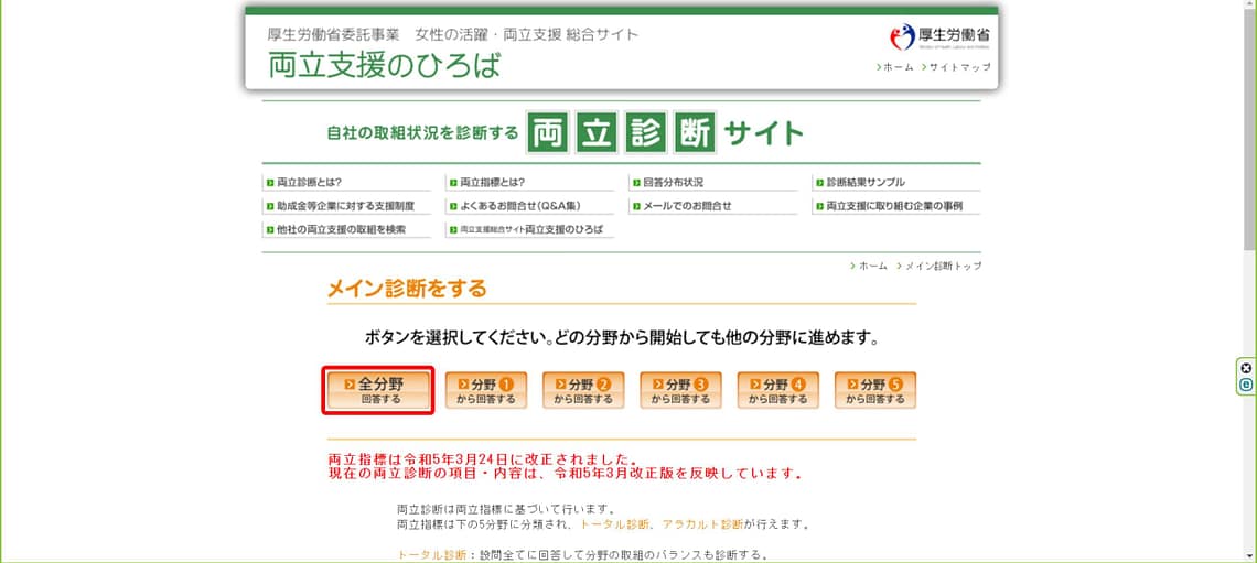 「全分野を回答する」を選択して、以下の設問に回答していきます。