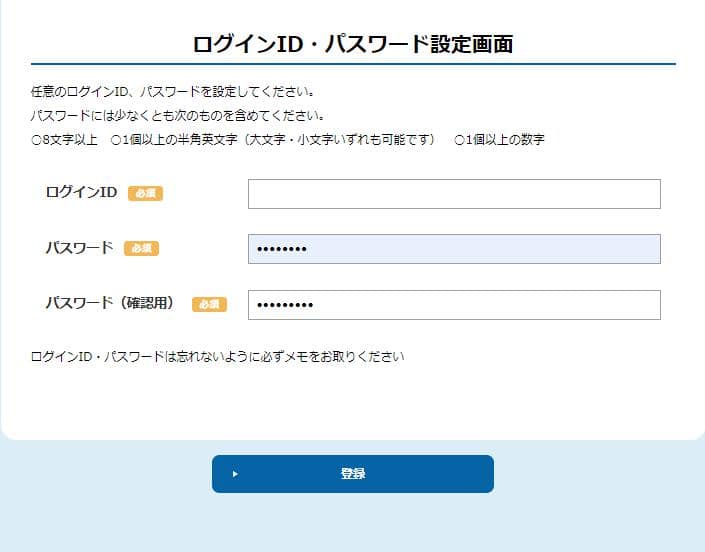 ※ パスワードは、8文字以上で英文字と数字を入れること