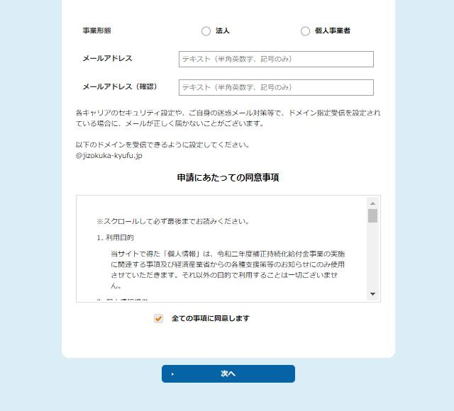 以上が準備できましたら申請に進みます。