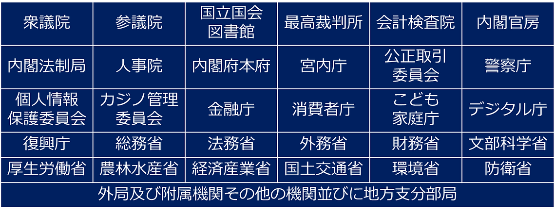 そのため、全省庁統一資格を持っていれば以下の全ての省庁へ入札することが可能になります。