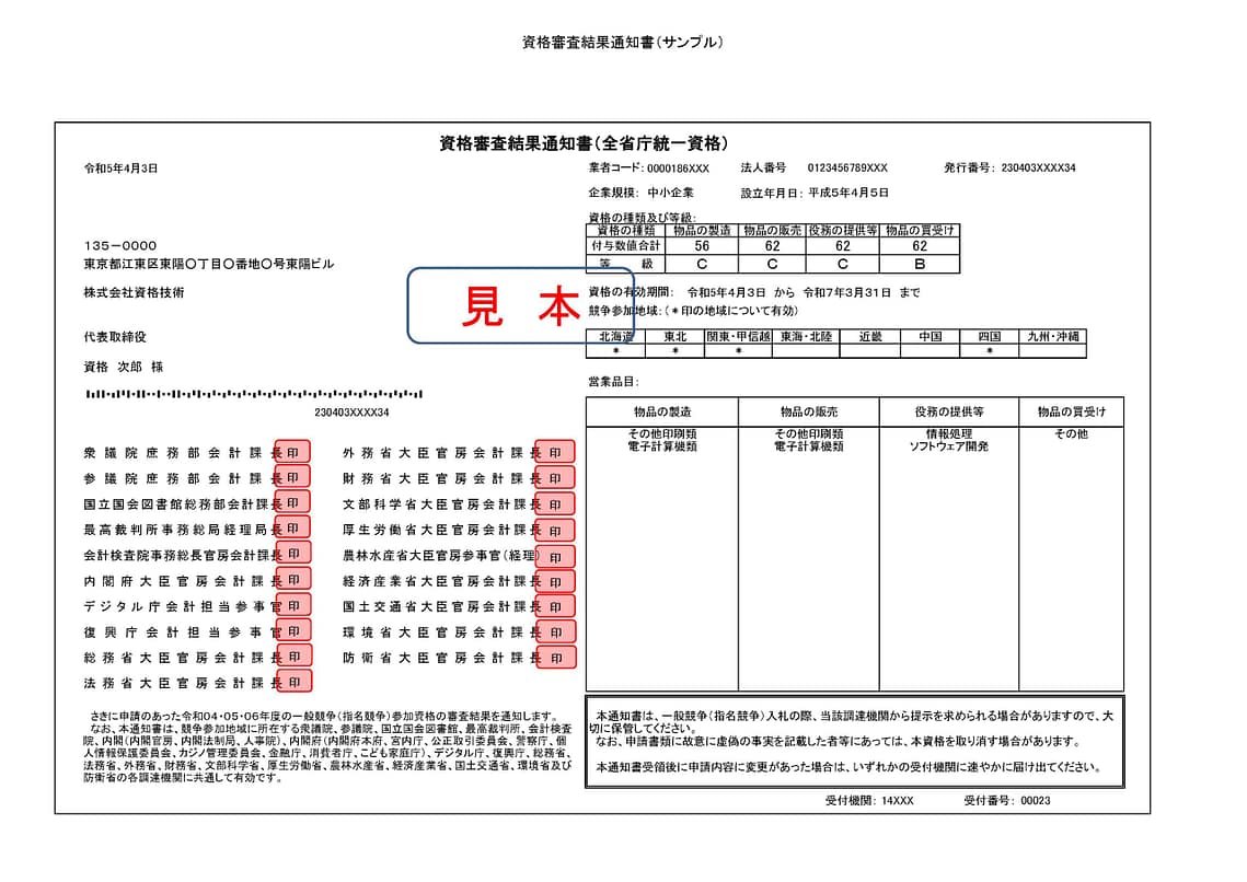 全省庁統一資格とは、国の事業に対して入札をすることができる資格で、各省庁における物品製造・販売・役務提供に対して入札参加することができるようになる資格です。
